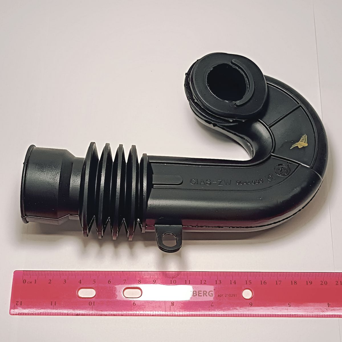 Резиновая гофра (трубка) поставляется без хомутов (зажимов), изогнутой формы, с гофрированной частью.