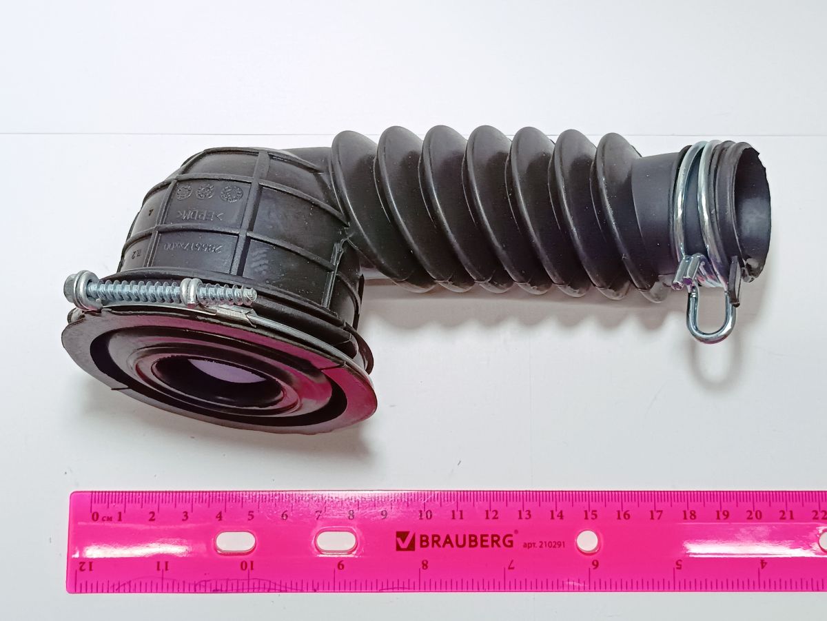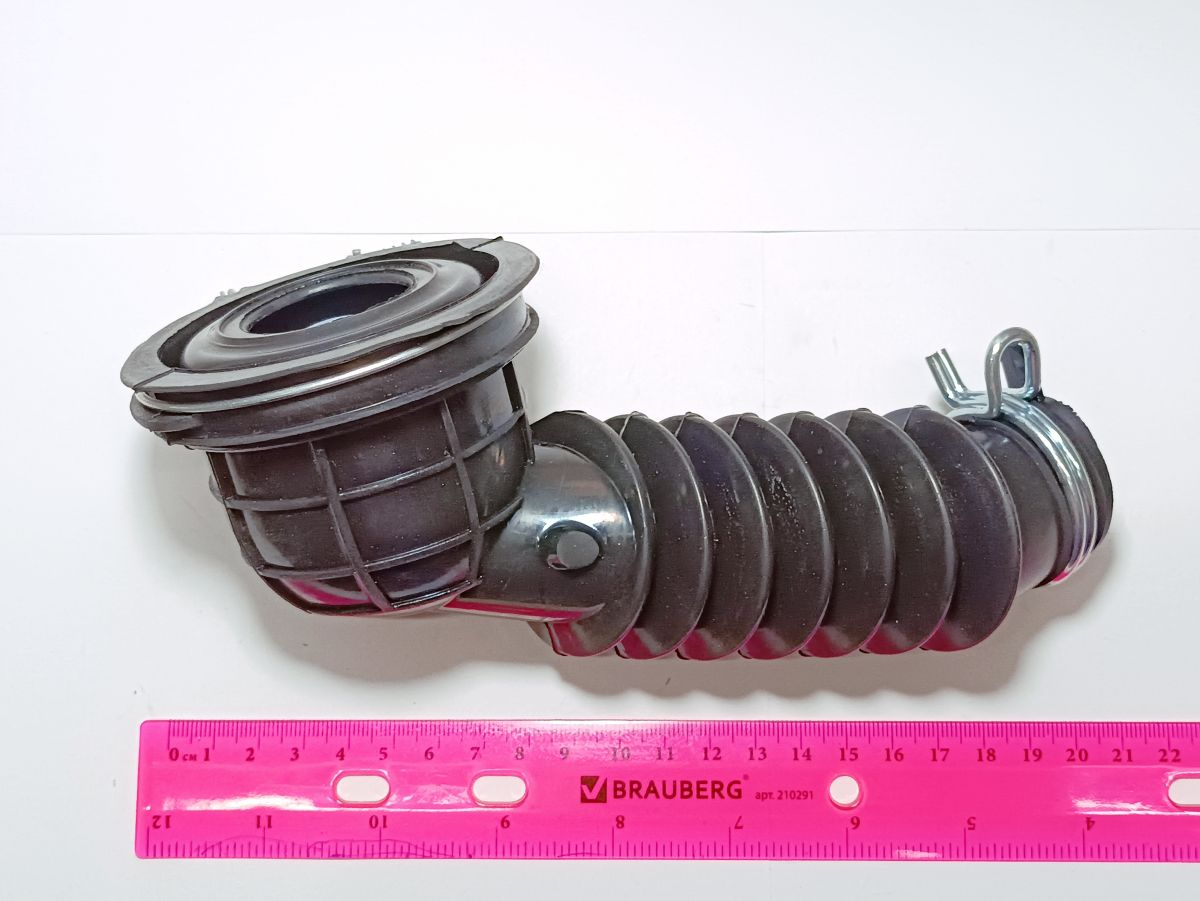 Резиновая гофра (трубка) поставляется без хомутов (зажимов), изогнутой формы, с гофрированной частью.