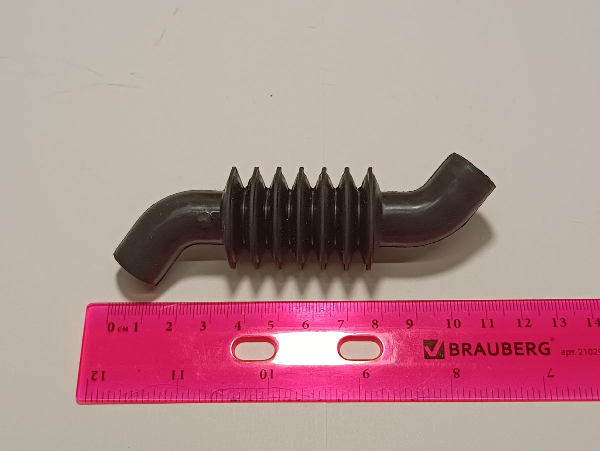 Резиновая гофра (трубка) поставляется без хомутов (зажимов), изогнутой формы, с гофрированной частью.