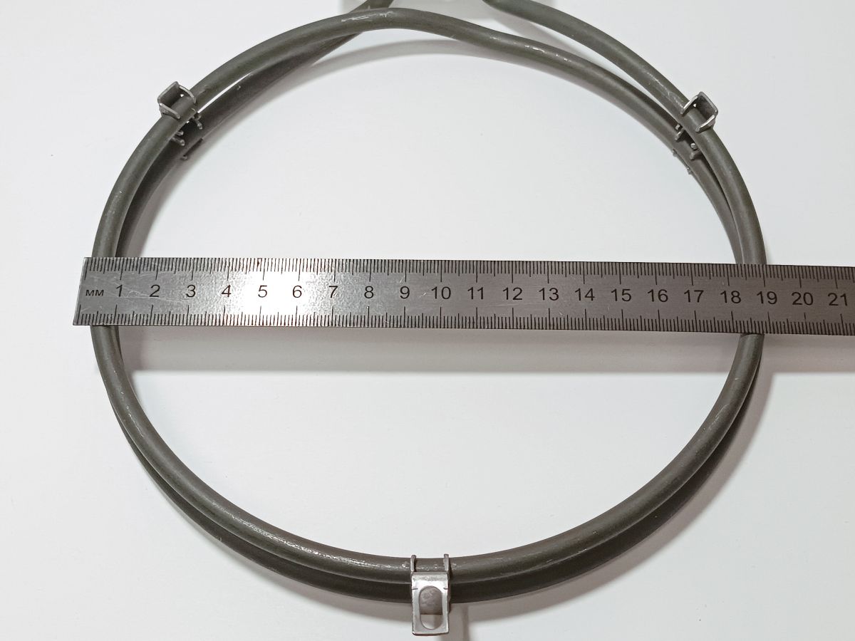 Круглый тэн вентилятора для электрического духового шкафа Хотпоинт-Аристон (Hotpoint-Ariston) Индезит (Indesit): напряжение 230 V (вольт), диаметр 190 мм.